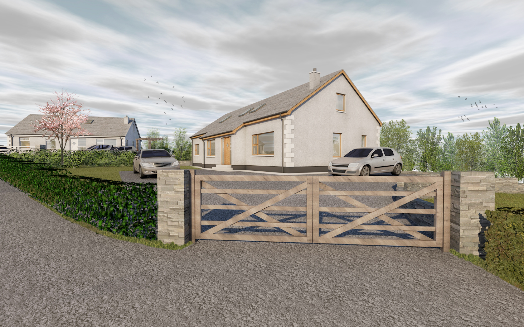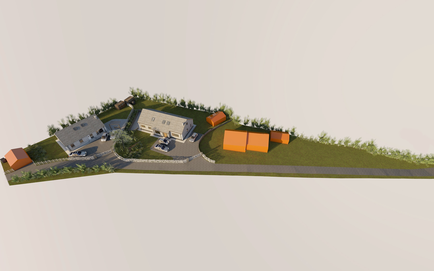 For this masterplan project, MiL Architects were asked to bring some life back to the site on a narrow piece of land overlooking the hills of Donegal. The site is currently occupied by two relatively new houses and a number of old sheds. The brief was to create a landscaping plan which would present a natural boundary for each of the existing houses. This in turn would be used to develop new land registry maps. MiL Architects studied photographs of an old cottage which used to grace the site, and attempted to instill a sense of ‘memory’ into the project. At the same time, the option for a potential third dwelling was investigated which would markedly increase the value of the site for the client.