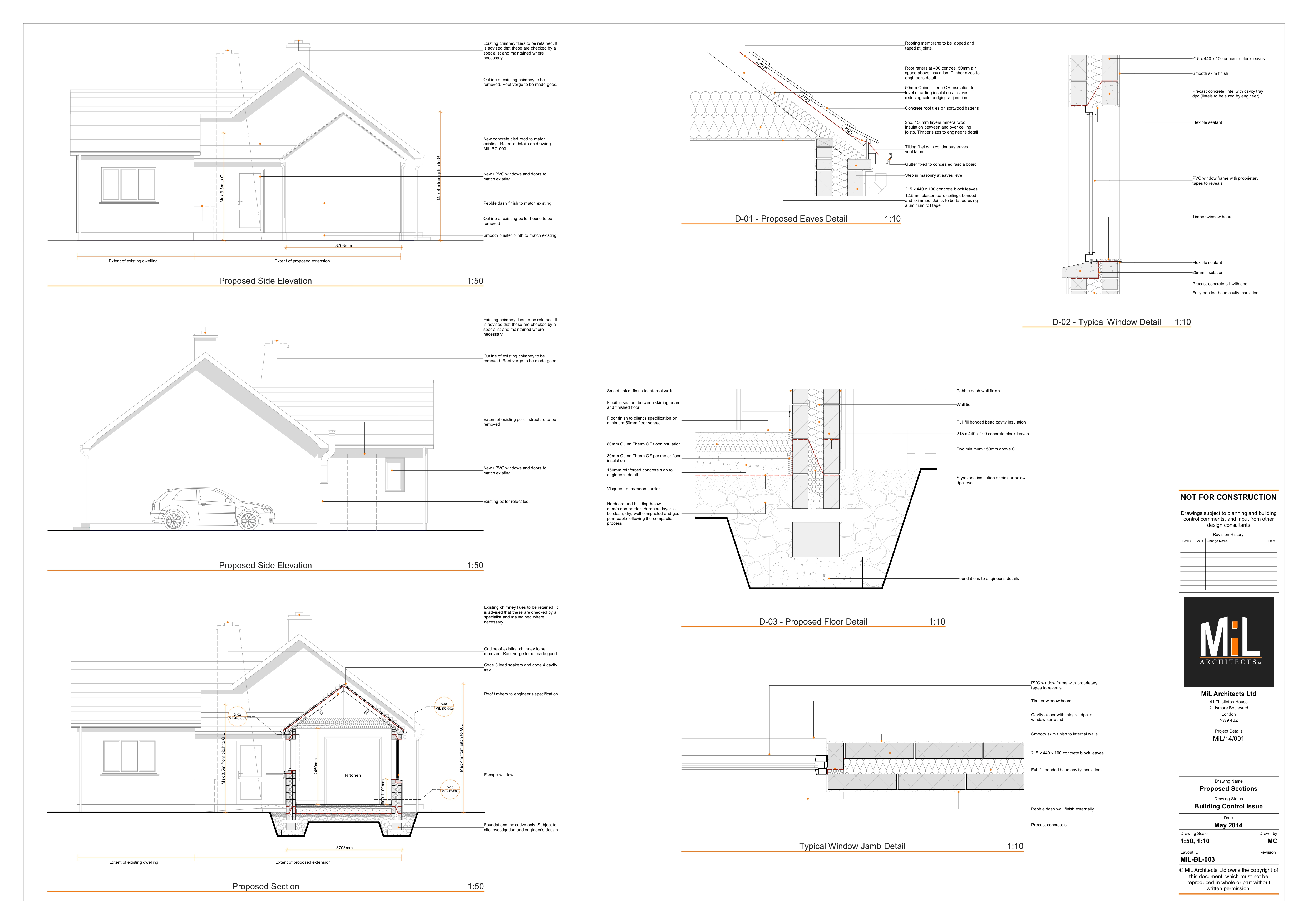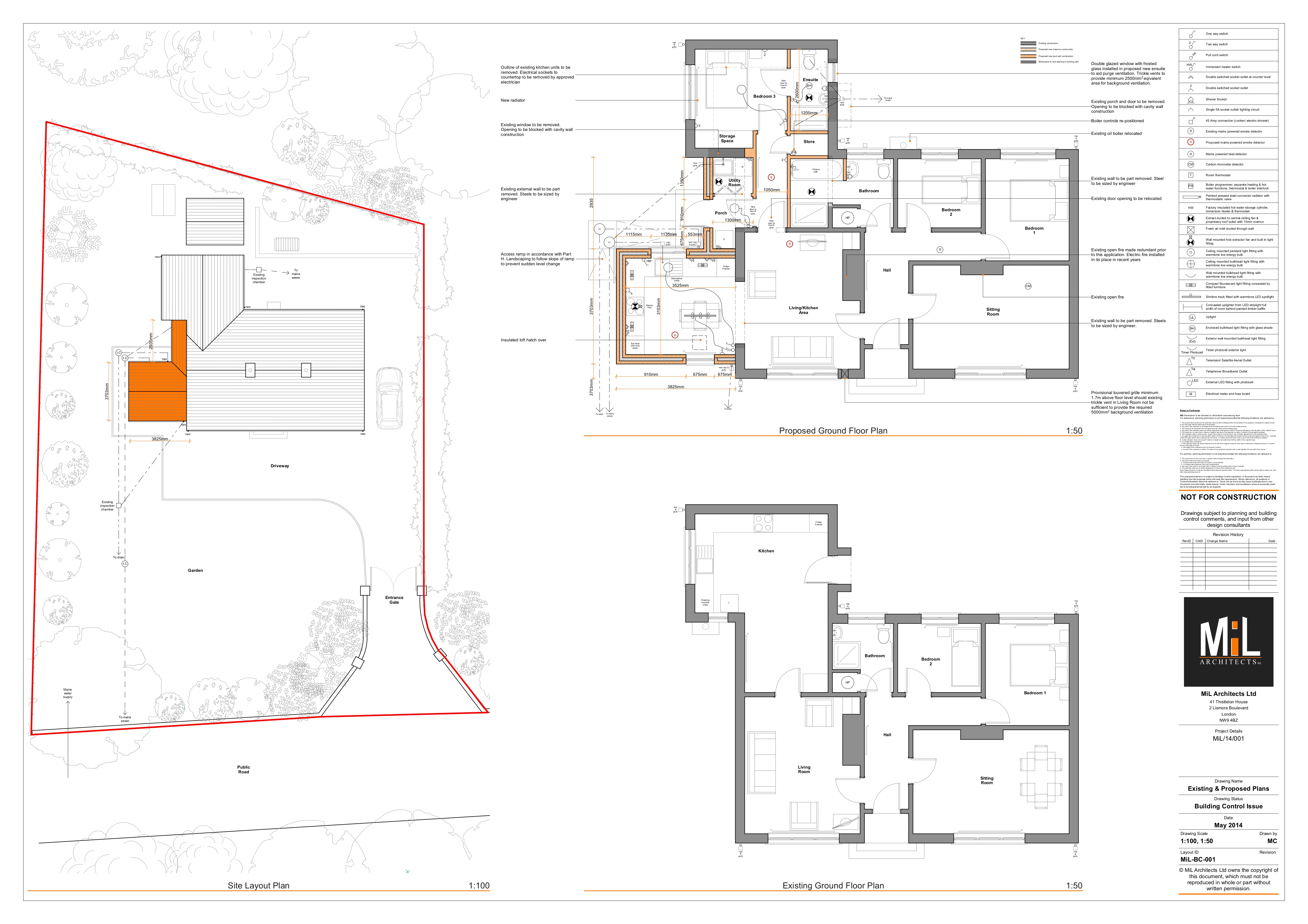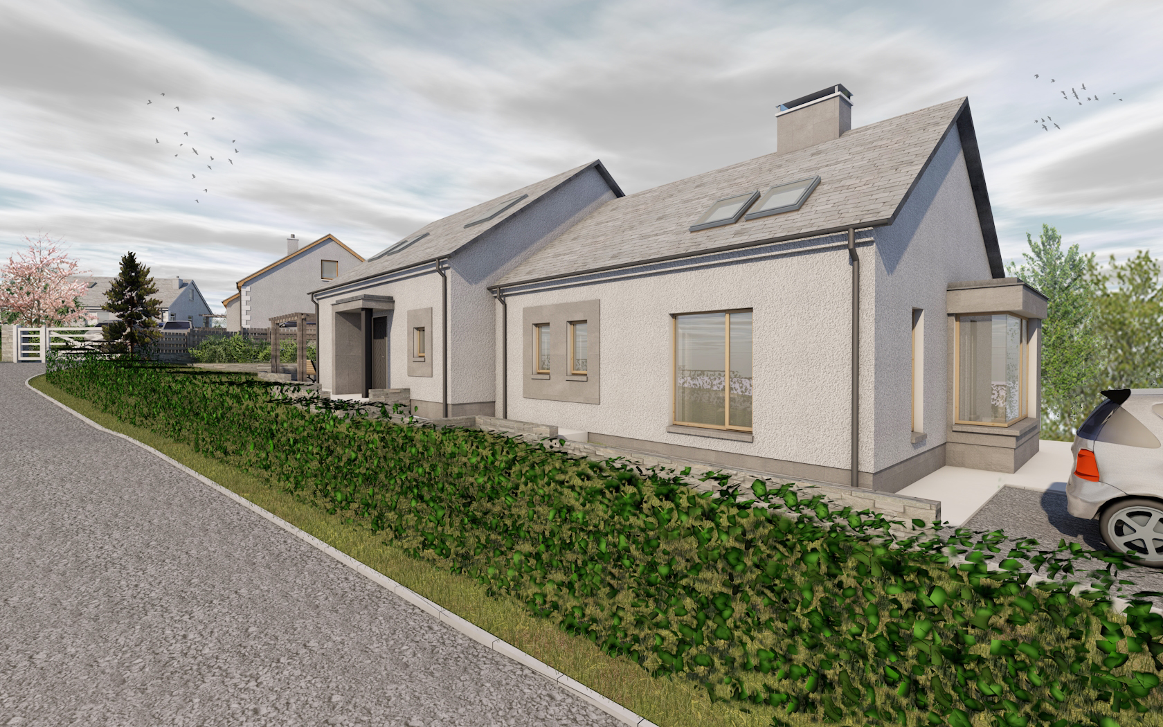 Existing two bed bungalow in Northern Ireland where the client required a new extension and re-organisation of the existing internal layout to make the home suitable for a disabled family member. A master bedroom with en-suite facilities was provided by relocating the kitchen into the new extension adjacent to the living room. A new open plan living / kitchen / dining space was created which provides a safe and secure space for the family to interact, whilst also providing supervision to the primary resident. The extension was permitted development and after agreeing the design, MiL architects submitted a building control application to the local authority.