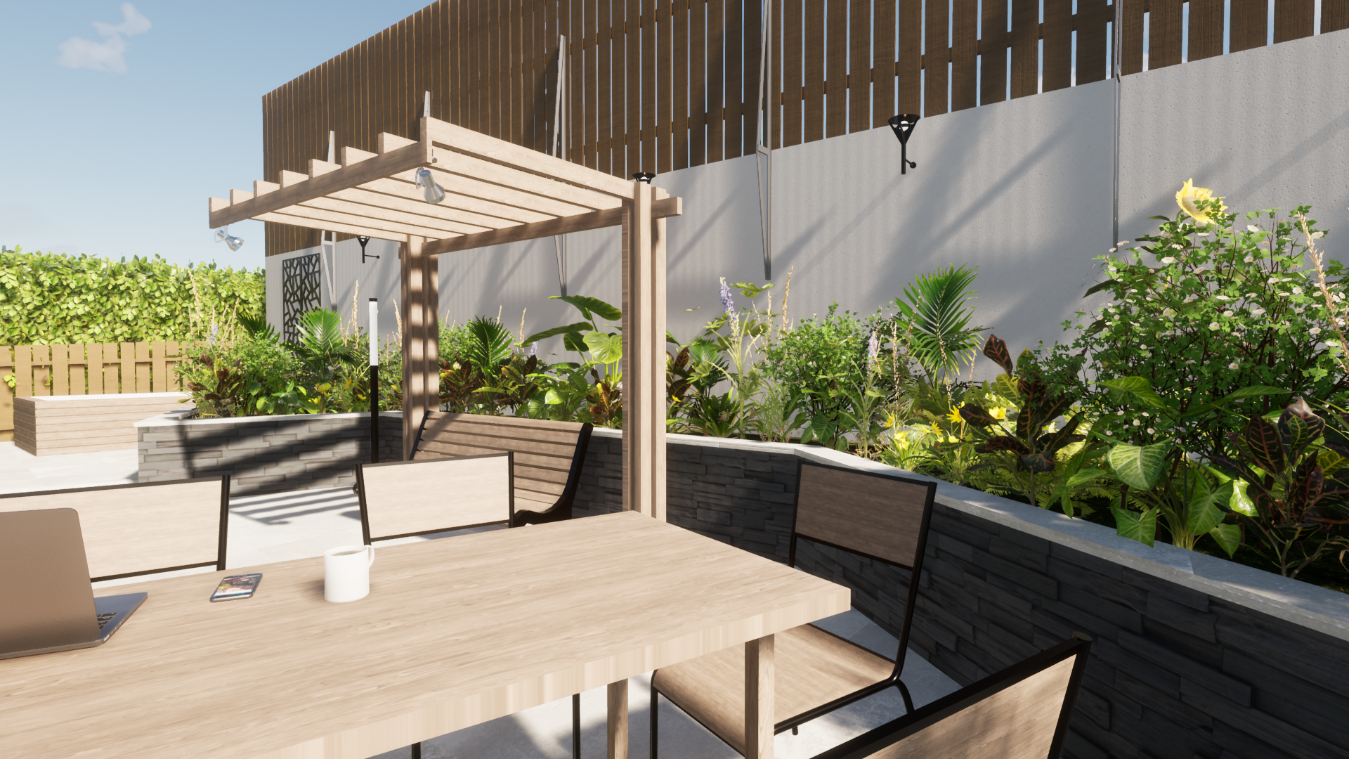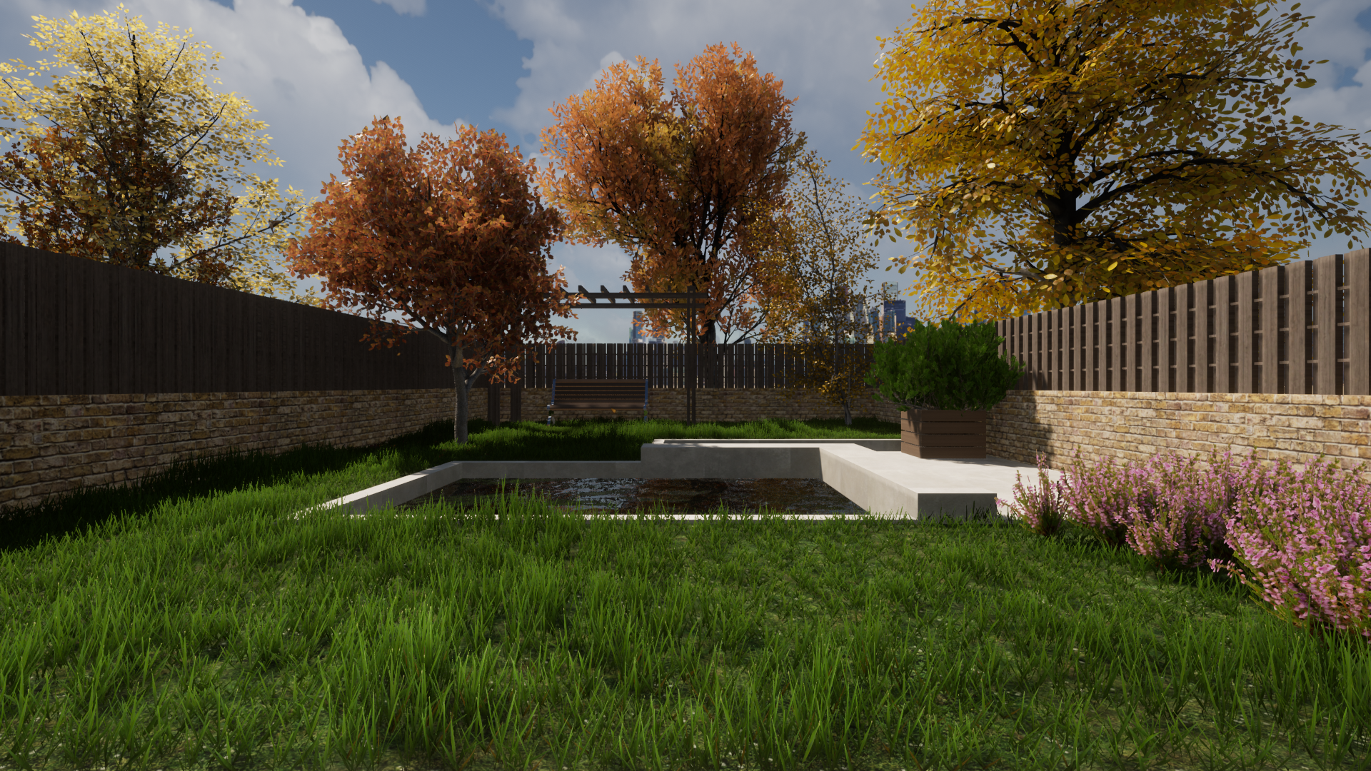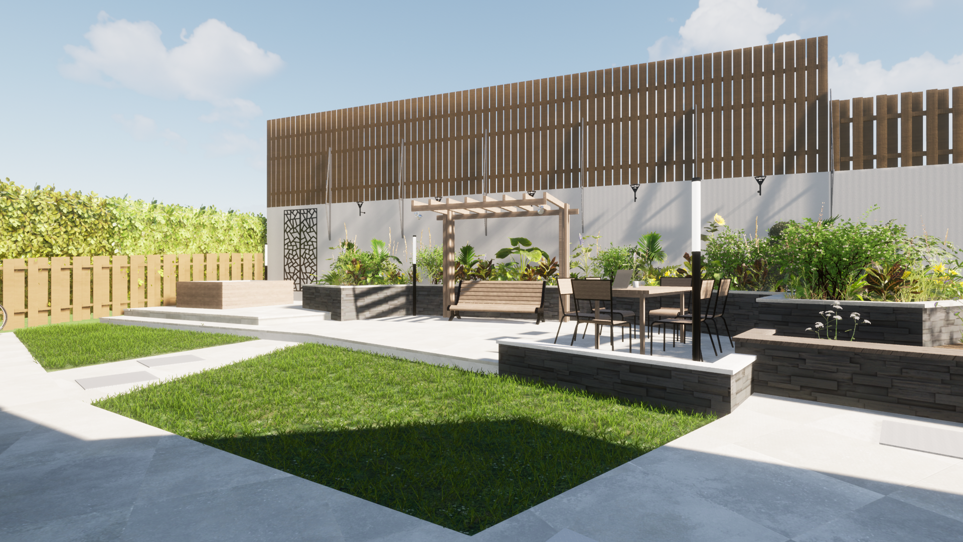 We were approached by the clients to propose a landscaping design for their rear garden – an irregular shaped space surrounded by high retaining structures on two sides. They wanted to create a hierarchy of spaces, and to provide more appropriate play areas for their young children. The concept was based on creating subtle level changes which would be used to enclose separate areas of the garden, providing a centralised terrace area which appears to be sunk into the landscape, as well as a more intimately proportioned courtyard which could someday be used for a sauna and / or pool for the children. The geometry was inspired by the irregular shape of the garden, and indeed the house itself, which has undergone several renovations and extensions over the years. A combination of 2D and 3D drawings were prepared, as well as a fly-through video which really helped to visualise the proposals