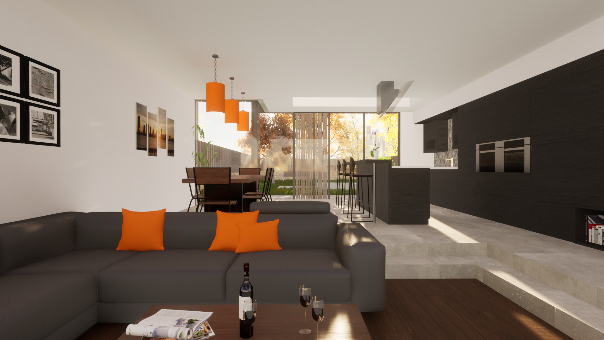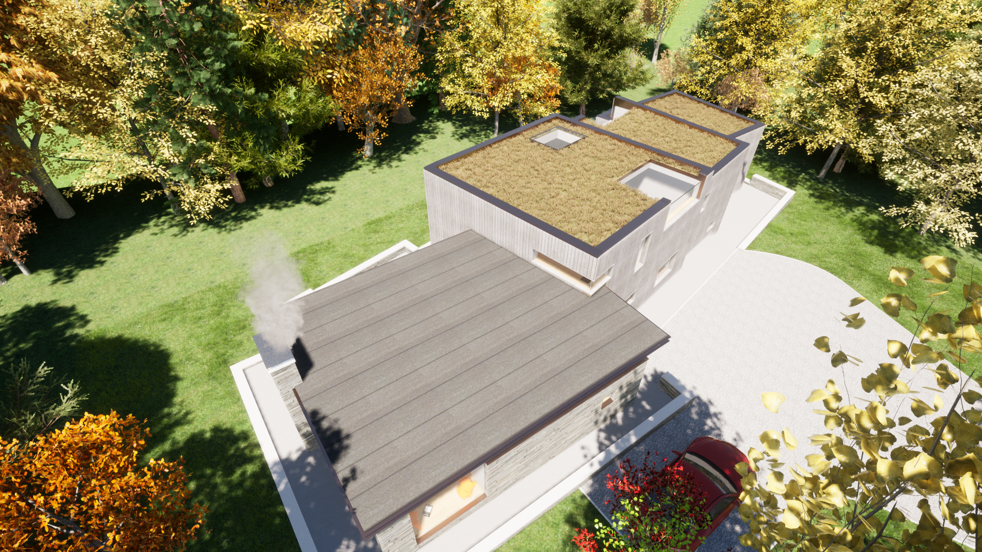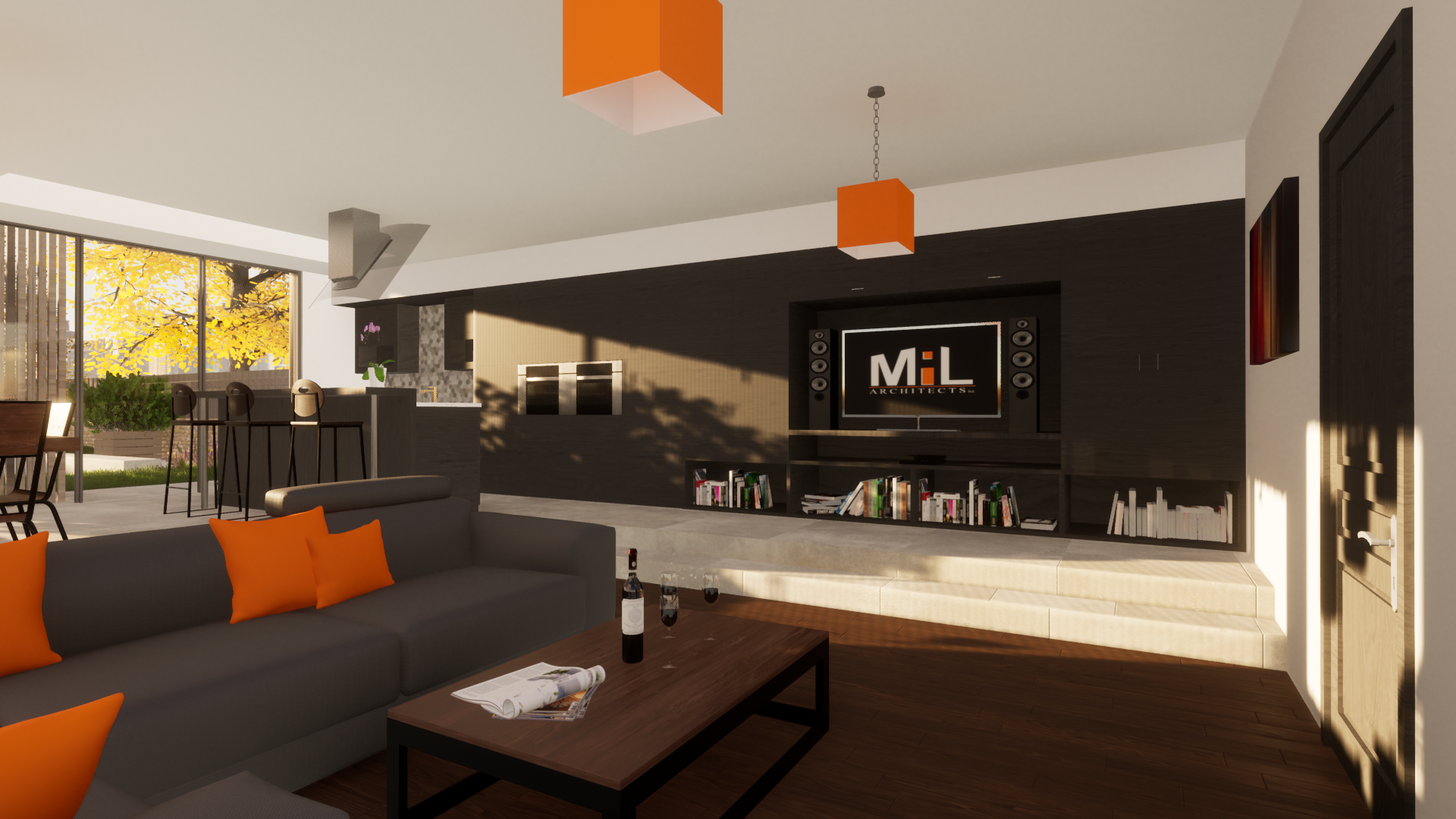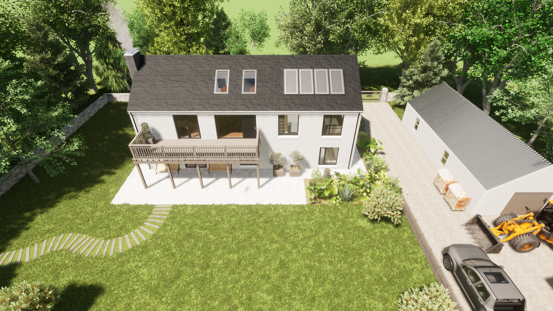 Whether you have a green-field/brown-field site, or even an old barn – there are many possibilities open to you regarding development. In this example, an old stone barn is renovated and connected to a new build bungalow via a frameless glass link. MiL are able to produce seasonal specific renders of your final design – Christmas is a favourite with many people.